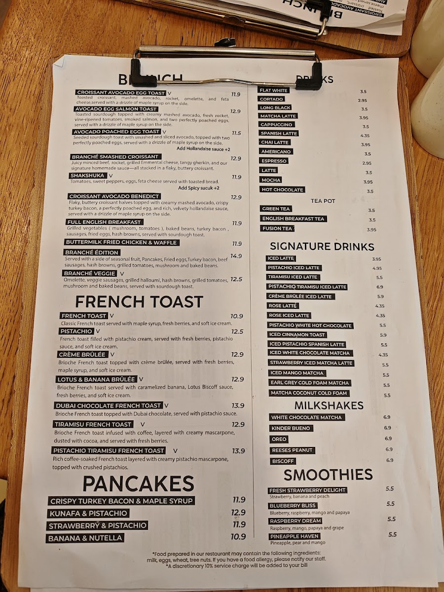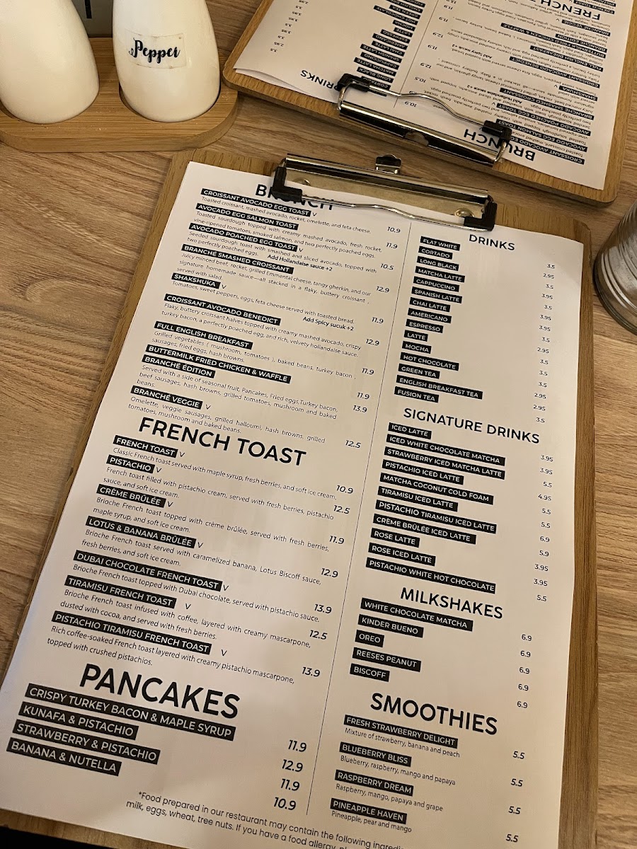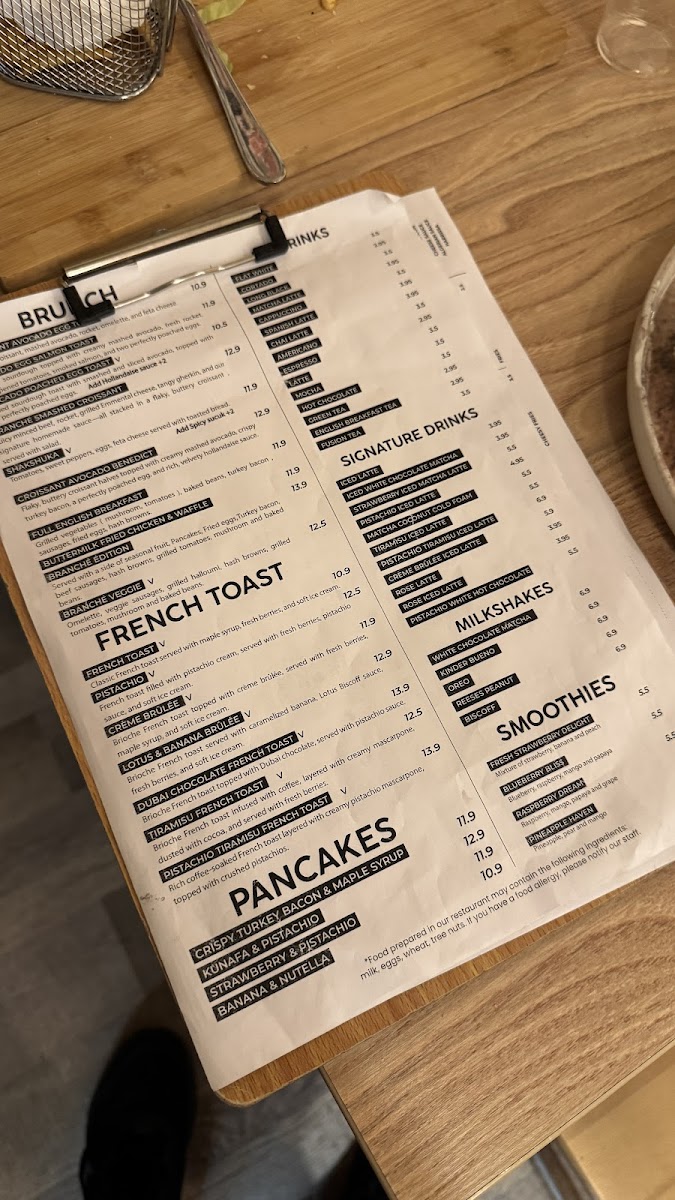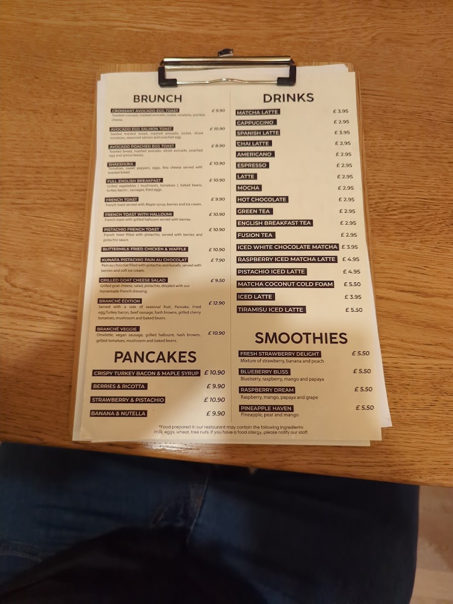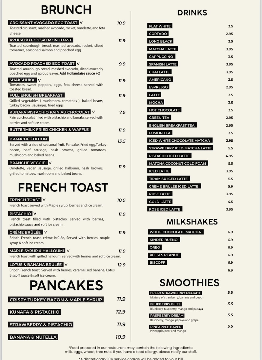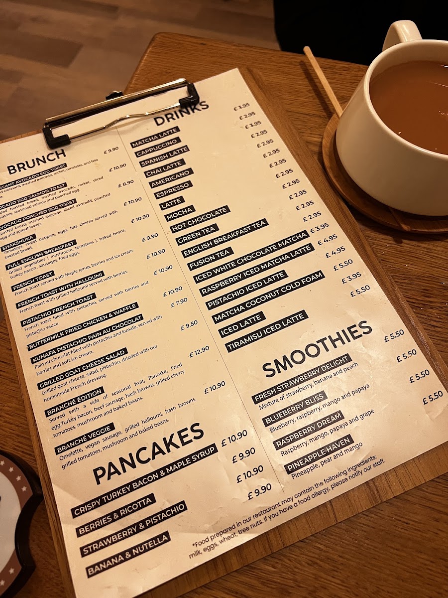 Branché London Menu